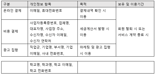 개인정보 보유∙이용 기간 내에서 개인정보를 처리∙보유합니다. 보유 기간이 경과하거나 이용자의 삭제 요청이 있을 경우 지체없이 파기합니다.